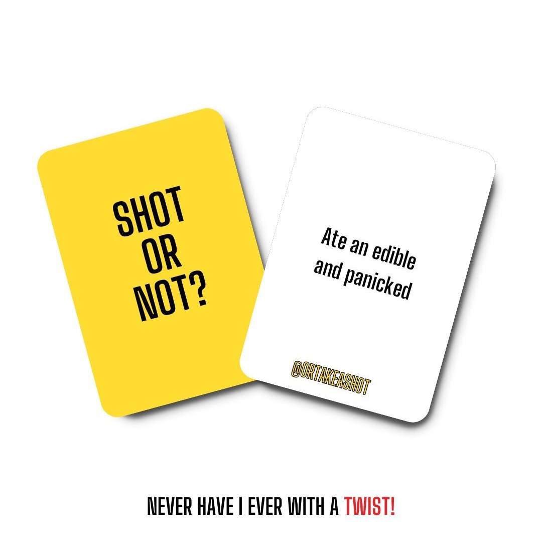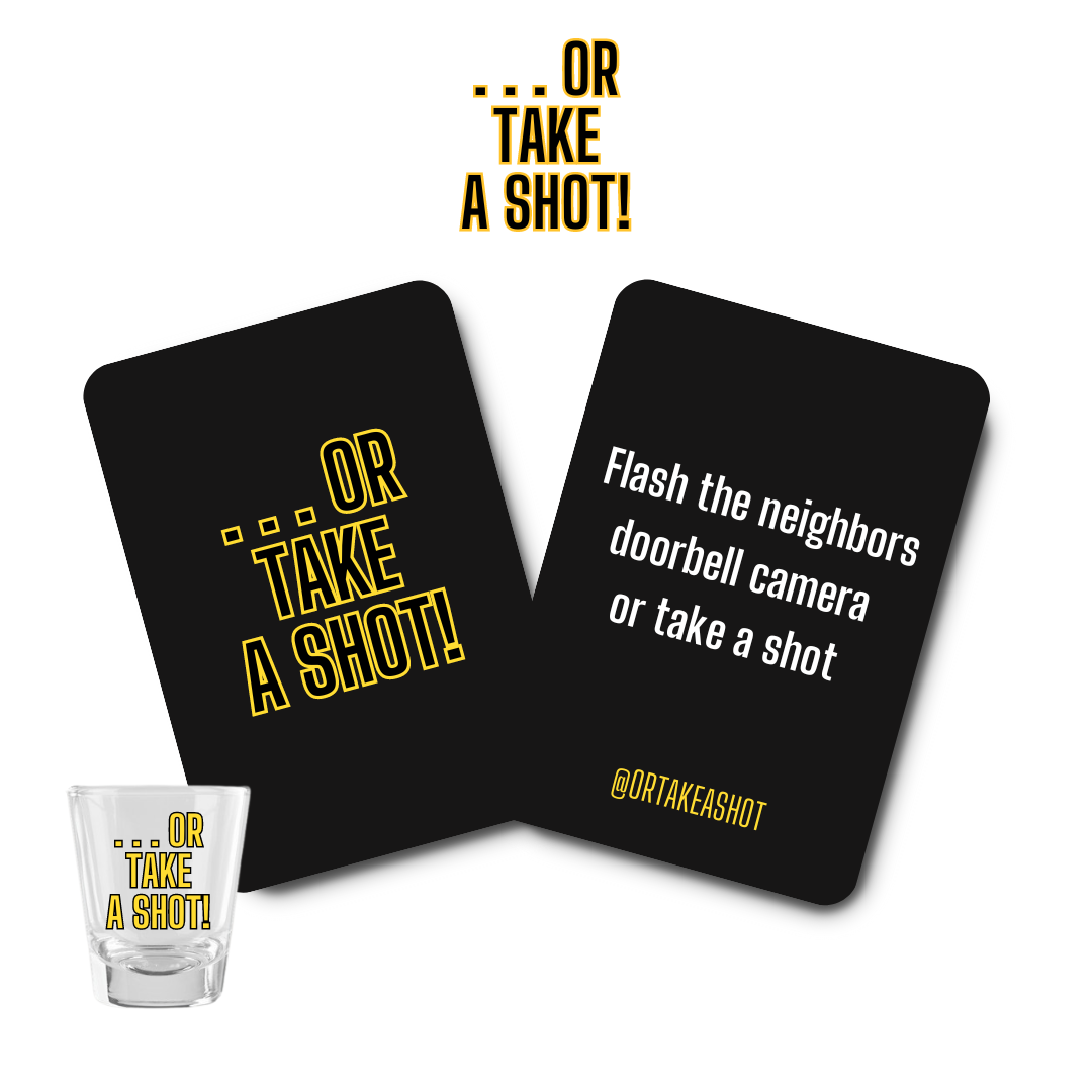 Introducing "Or Take A Shot" - Where every draw brings a new thrill! Gather your friends, your favorite drinks, and brace yourselves for a night of daring choices and unforgettable moments.