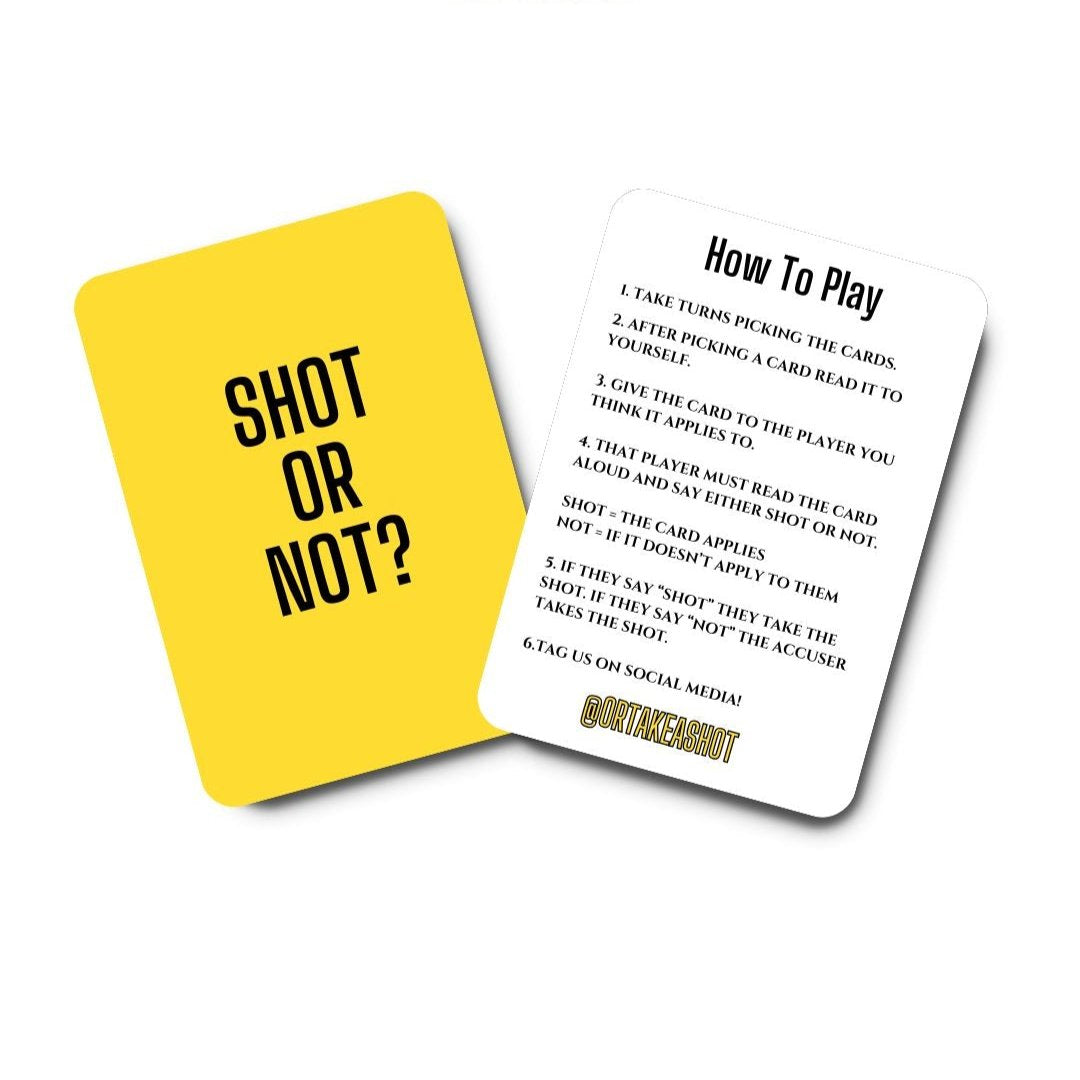 “Shot or Not” combines humor and storytelling, making it perfect for parties, gatherings, or just a fun night in. With a mix of light-hearted and revealing prompts, you’ll discover hilarious secrets about your friends while sipping your favorite drinks. So gather your crew, pour your drinks, and get ready to spill some unforgettable stories!